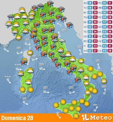Vortice sull'Europa centrale. Temporali in arrivo sui settori alpini, sul Trentino Alto Adige e locali sulla pianura lombarda, più soleggiato sul resto delle regioni.